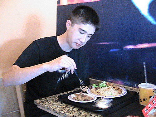 24日,第一次讓他試試學校餐廳