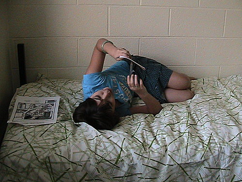阿呆看到床,就要躺一下!