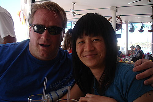 照相時,被太平洋的海水沖走,(他們站在海中照相)