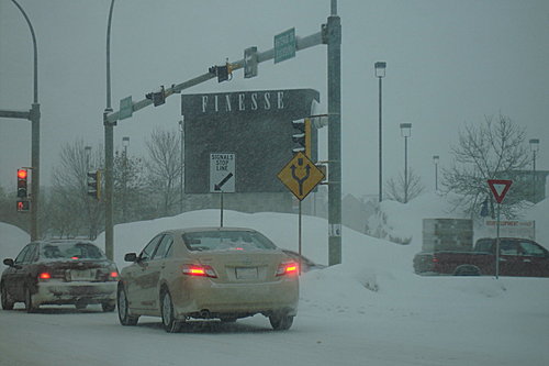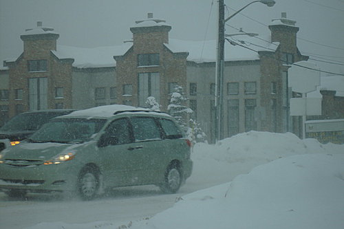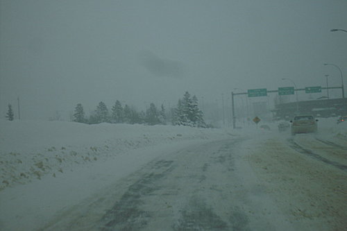上班途中,天色灰灰的,馬路還沒清理,雪還是繼續下