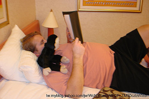 後面的猴子是阿呆的"安全棉被",睡覺前一定要抱著才能睡.所以,也跟到船上來囉!