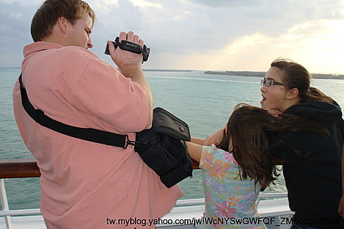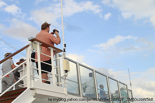 船要離港了,大茶米到頂層錄影,當天風好大.