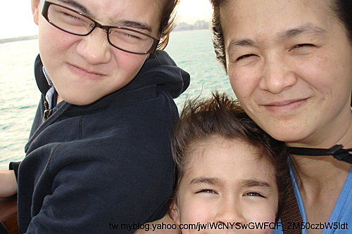 爸爸給兩位小姐來張船出港口的相片!