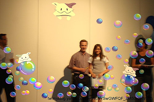在學校禮堂跟氣球合影! 她不願意跟老媽子我照相開始嫌我醜了
