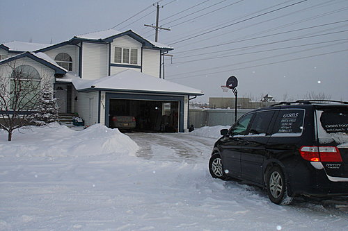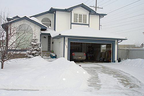 剛下的雪綿綿的,馬上鏟,很容易.若是等到車輪壓過後再鏟,就會黏在地上,很難弄乾淨.所以,我都先將車子停在路旁(我家是巷底的最後一家,我就大大方方停在馬路上呵呵呵!很霸道吧!?)