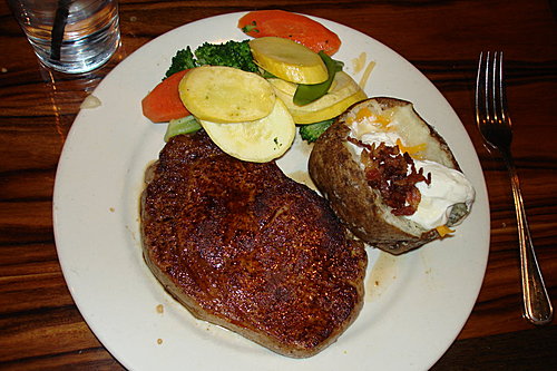 大茶米9 oz的牛排. 他很愛難怪超胖的肚子!