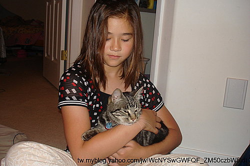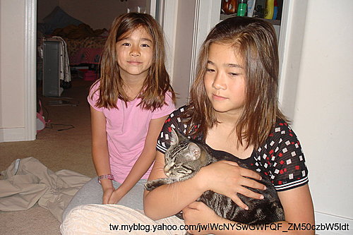 艾琪只敢遠遠的看,她是任何小蟲子都敢抓的人,不知為何就是怕貓.