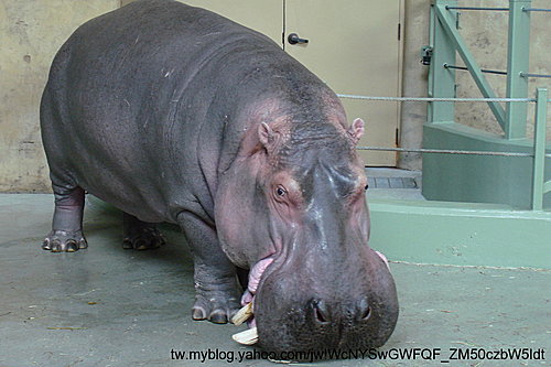 42歲的河馬, 腳腳好小,身體很龐大, 牙齒也很大一顆.