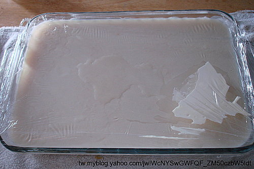 我只是試做,沒將豆花放在好看的容器. 一大桶豆漿,可以做成2份蛋糕9X13的大小!