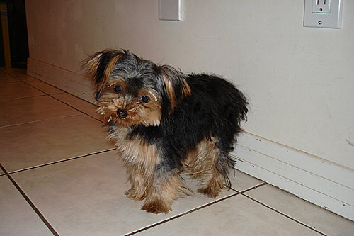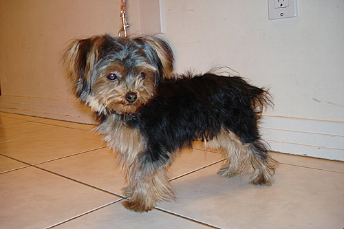 昨天, 艾瑞發現它在地上擦屁股, 把它捉去洗澎澎. 發現屁股黏了些髒東西. 乾脆順便給它"修門面", 就成這副德性還滿可愛的!