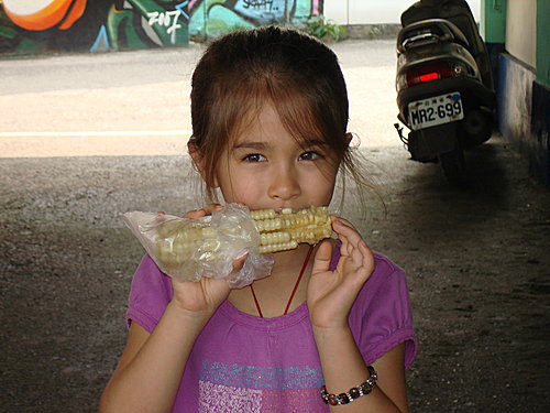 阿呆第一次吃水煮玉米,就在溪湖的員林客運,她就愛上了台灣的白玉米!