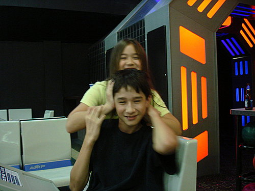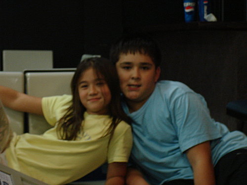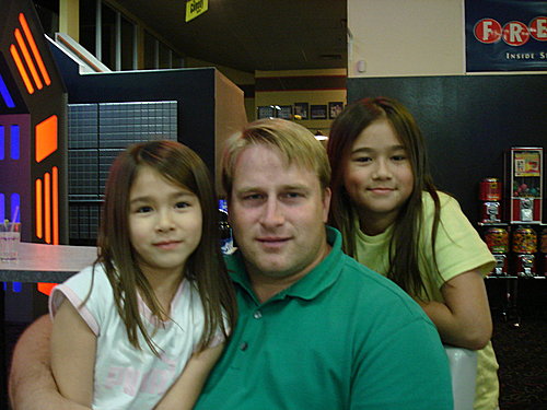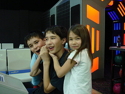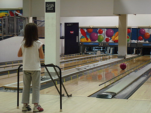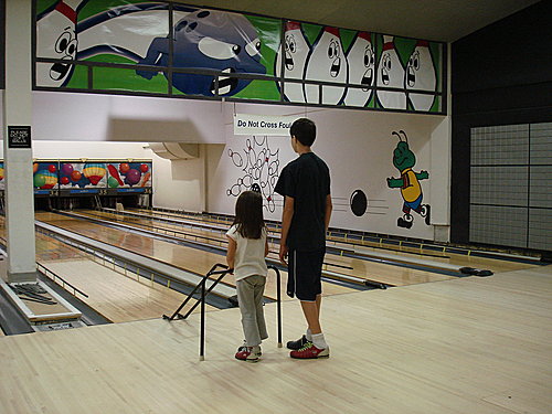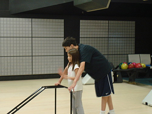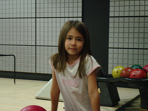 阿呆還發現,穿保齡球鞋,可以在硬木板上跳"踢躂舞",她跳的很開心,可惜我沒有錄影機可以錄起來存證!她是第一次"被允許"下場打,以前太小了,只有看的份!