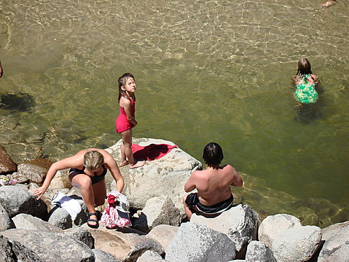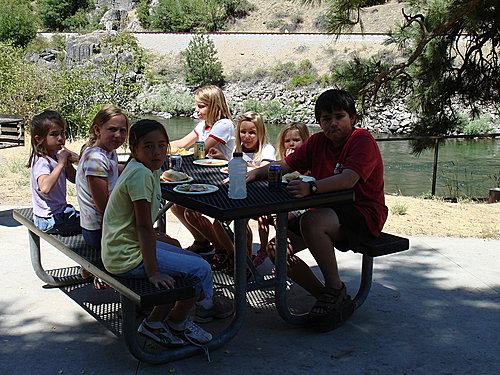 餐後到泛舟地點,我偉大的婆婆又有意見.她要我和她一起帶三個小娃娃回家去照顧.當時,天氣很熱,她說:就開妳的車好了!回家吹冷氣.(跟著三個小娃娃,能放輕鬆嗎?)