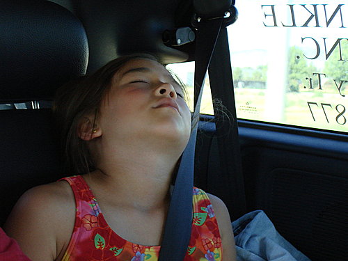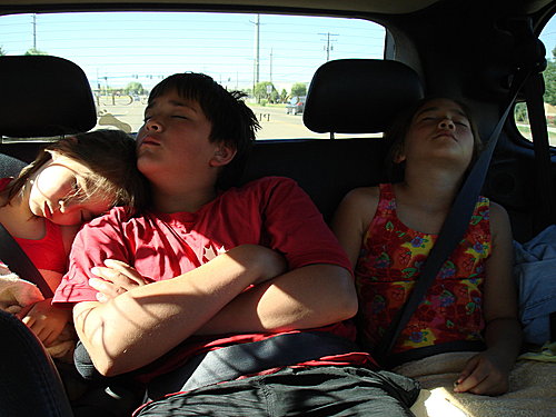 這趟泛舟之旅,孩子們玩的很高興,回程時,睡的東倒西歪!