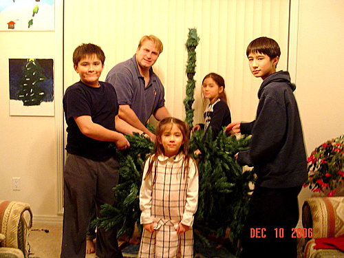 昨晚 , 在受不了阿呆的哇哇叫下, 我們一家動手合力把聖誕樹架起來!