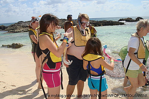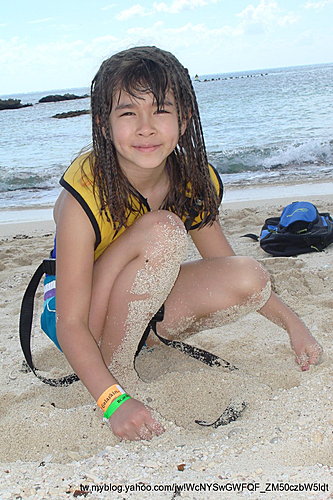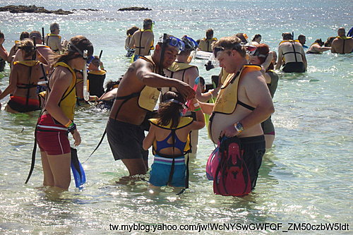 左試右試,連導遊都過來幫忙了,阿呆的浮潛鏡還是戴不好