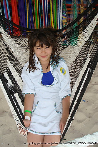 為了能曬到均衡的陽光,我將袖子捲高,裡面穿的是泳衣啦