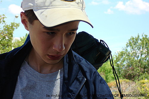 家恩,7月7-12日,參加男青年的露營.一周沒洗澡,頭髮油油的,他老兄就帽不離頭! 臉上更多了好多痘痘!