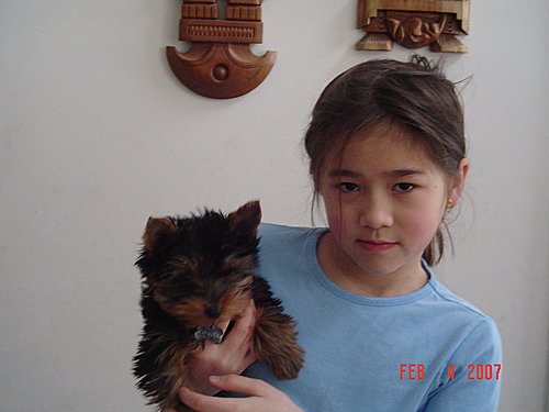 艾瑞工作一年,存了一千元。這時,她想養小狗狗,便花了700元加幣(老二投資500元)買隻小型的約克夏!
